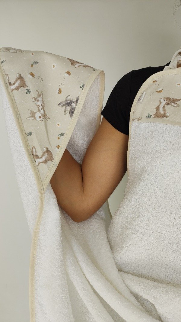 Toalla blanca y capucha estampada.